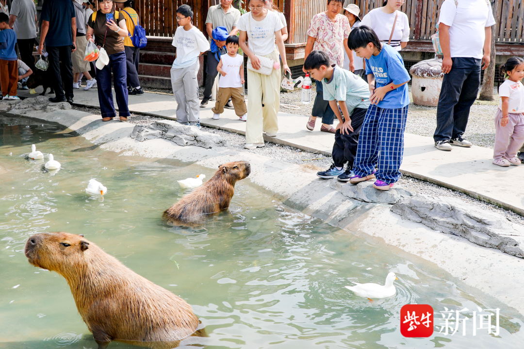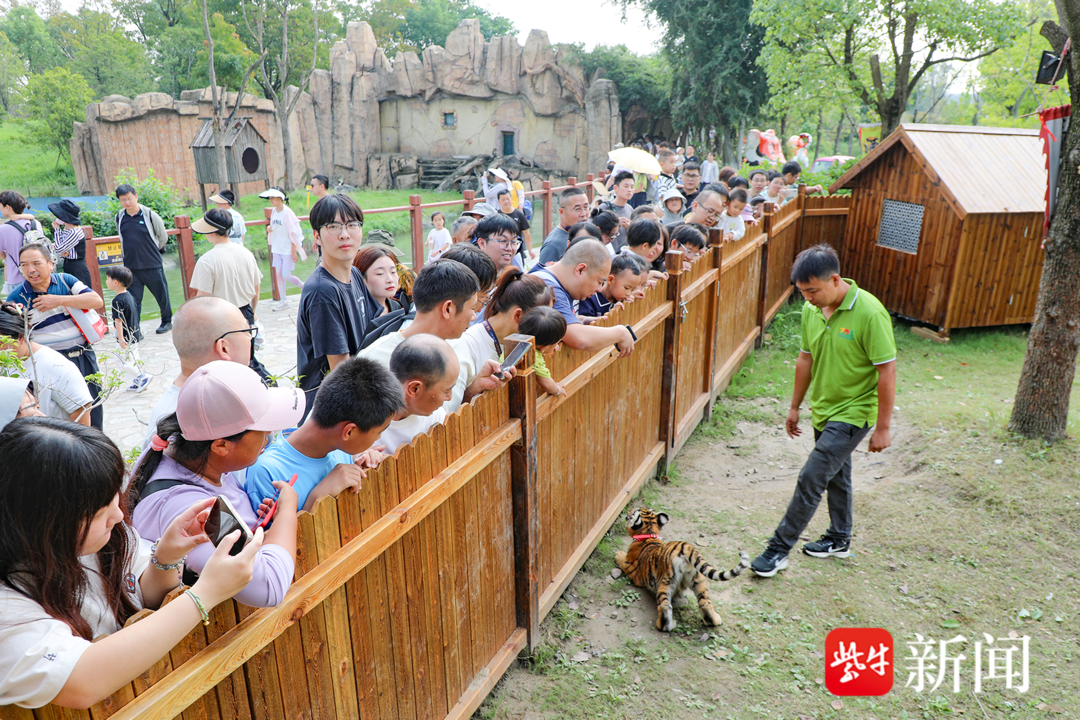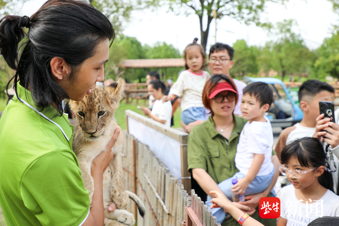 在南通森林野生动物园,“萌兽天团”用最纯真的互动,回应着游客的奔赴 —— 刚满3个月的小狮子“蛋黄”趴在保育员怀里;小老虎“三万”追着心爱的玩具球跑跳,偶尔歪头卖萌,引得人群阵阵欢笑;性情稳定的水豚与小朋友们的友爱互动,让不少家长举起手机记录。“孩子平时在城市里很少能近距离接触动物,今天看到小老虎小狮子,兴奋得一直说‘它好像在跟我打招呼’。”来自南京的王女士笑着说,这样的瞬间,让所有旅途奔波都变得值得。